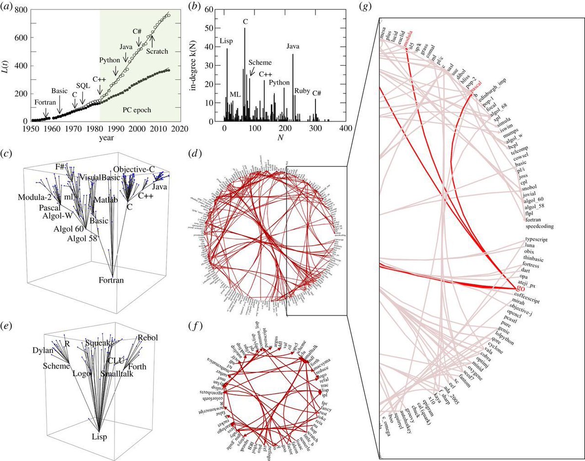 Our article “punctuated equilibrium in the large-scale evolution of programming languages” can be freely accessed! Networks capture horizontal transmission and they can be used to reconstruct cultural phylogenies in Information Technology.