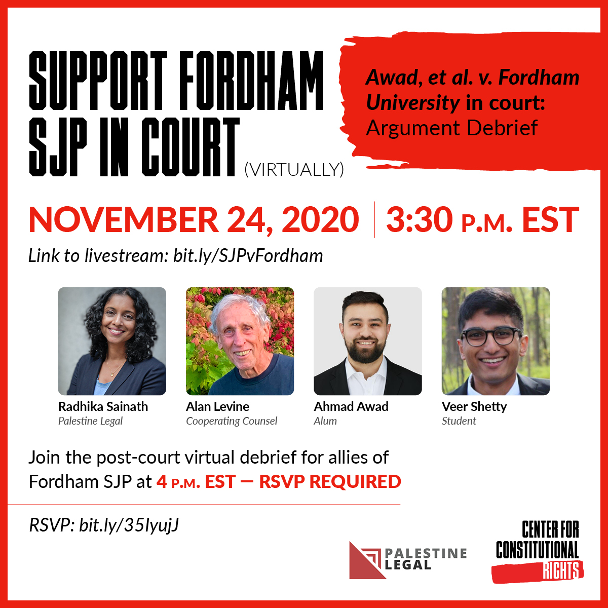 @pal_legal and@theCCR sued Fordham on behalf of@FordhamSJP & won. Now Fordham is appealing, & we need to (virtually) pack the courthttps://twitter.com/pal_legal/status/1330995951641694210 …
