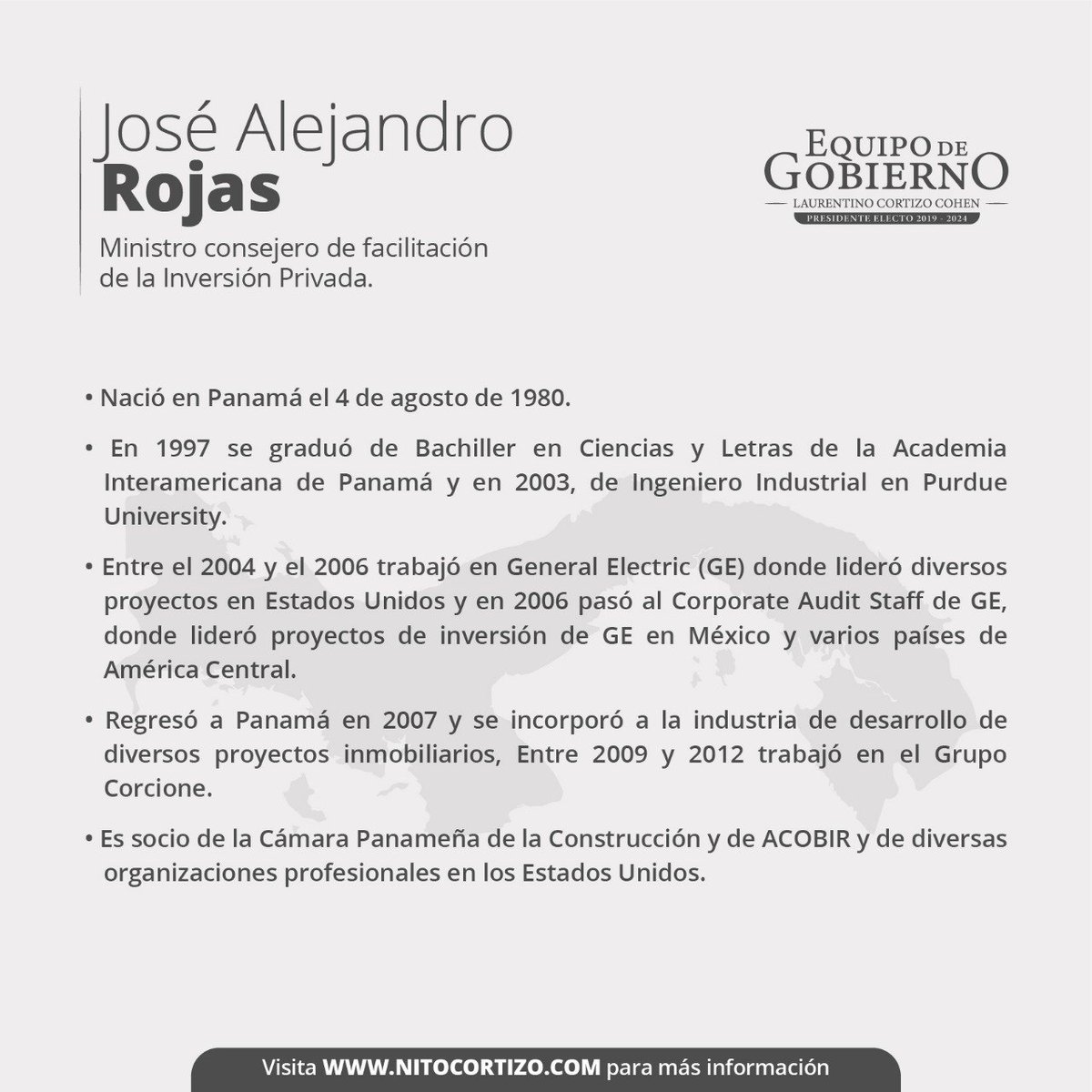 José Alejandro Rojas será el Ministro consejero de facilitación de la Inversión Privada. Importante para la transformación que nuestro país necesita, trabajaremos para que haya más inversión y crecimiento en Panamá.pic.twitter.com/QYZHT4oYTp
