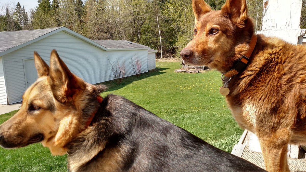 Our sweet sweet doggies, Morgana & her big brother Meskwaki. She still grieves his passing.. and has seriously transferred her need for a calm strong alpha male to @CLupus63! Welcome to our world, @JimStoval
