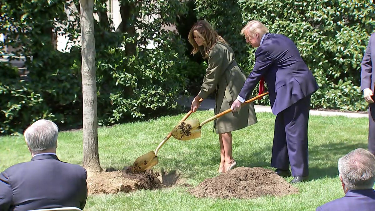 President Trump and First Lady Melania Trump participate in an Earth Day tree planting. pic.twitter.com/kTIdB6UdD5