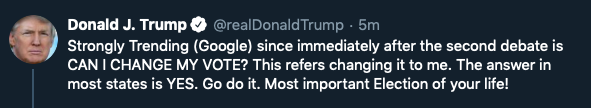HAHAHAAHAHAHAHAHAHAHHA amazing that you think anyone would change their vote from Biden to you after that disaster of a second debate. 7 days, asshole. Tick tock.pic.twitter.com/9mkqbELdTL