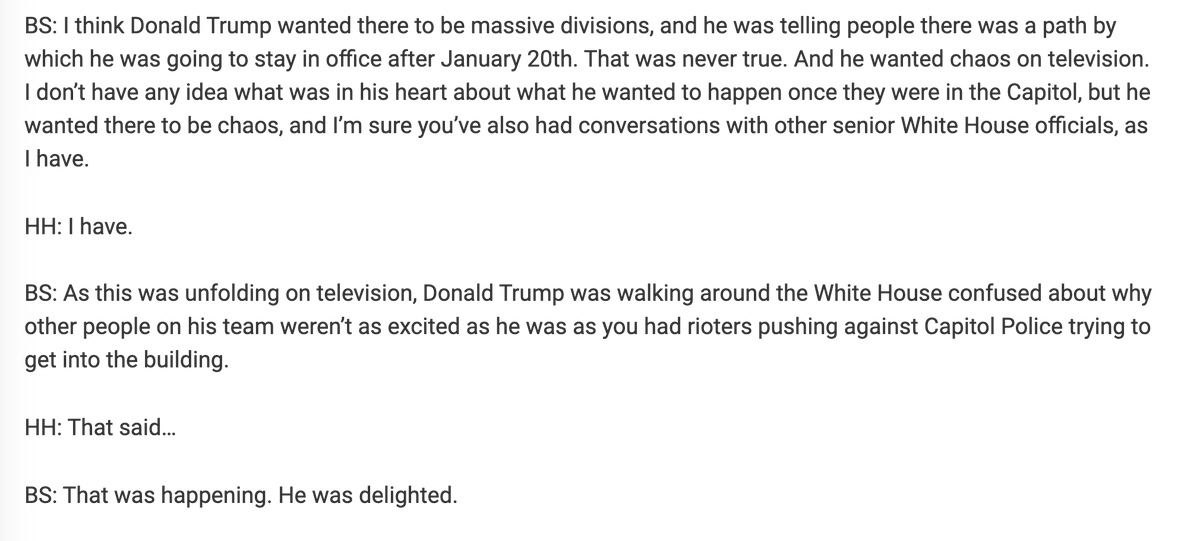 Ben Sasse, citing conversations with senior White House officials, says Trump was "excited" and "delighted" as his supporters tried to storm the Capitol and was "confused" others weren't so excited https://hughhewitt.com/senator-ben-sasse-on-impeachment-and-transition-the-gop-in-minority/ … pic.twitter.com/arcv72gnvJ