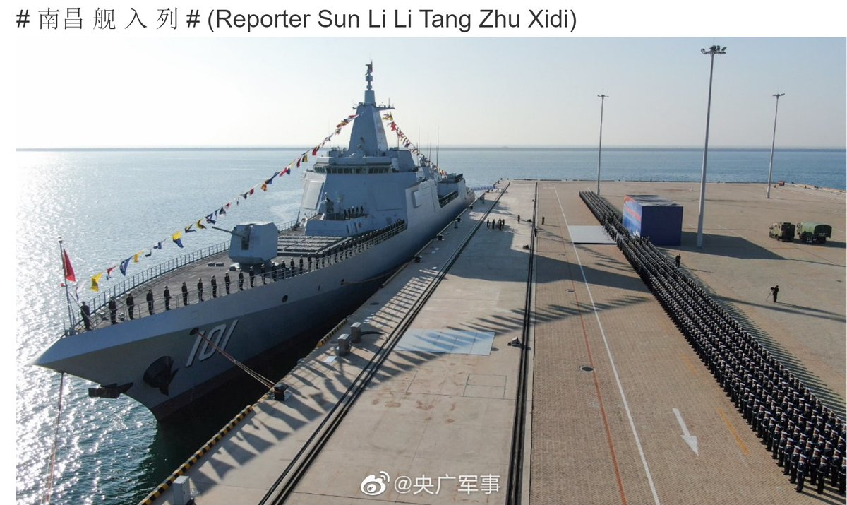 #Chinese Type 055#destroyer#NANCHANG 101 commissioned Sun 12 Jan at Qingdao, the biggest and most advanced surface warship yet for the#PLAN#Navy. Built at Jiangnan JNCX in Shanghai she began trials in Aug 2018, led the 70th anniversary parade in April 2019. Photos via Weibopic.twitter.com/n6USEZakiE