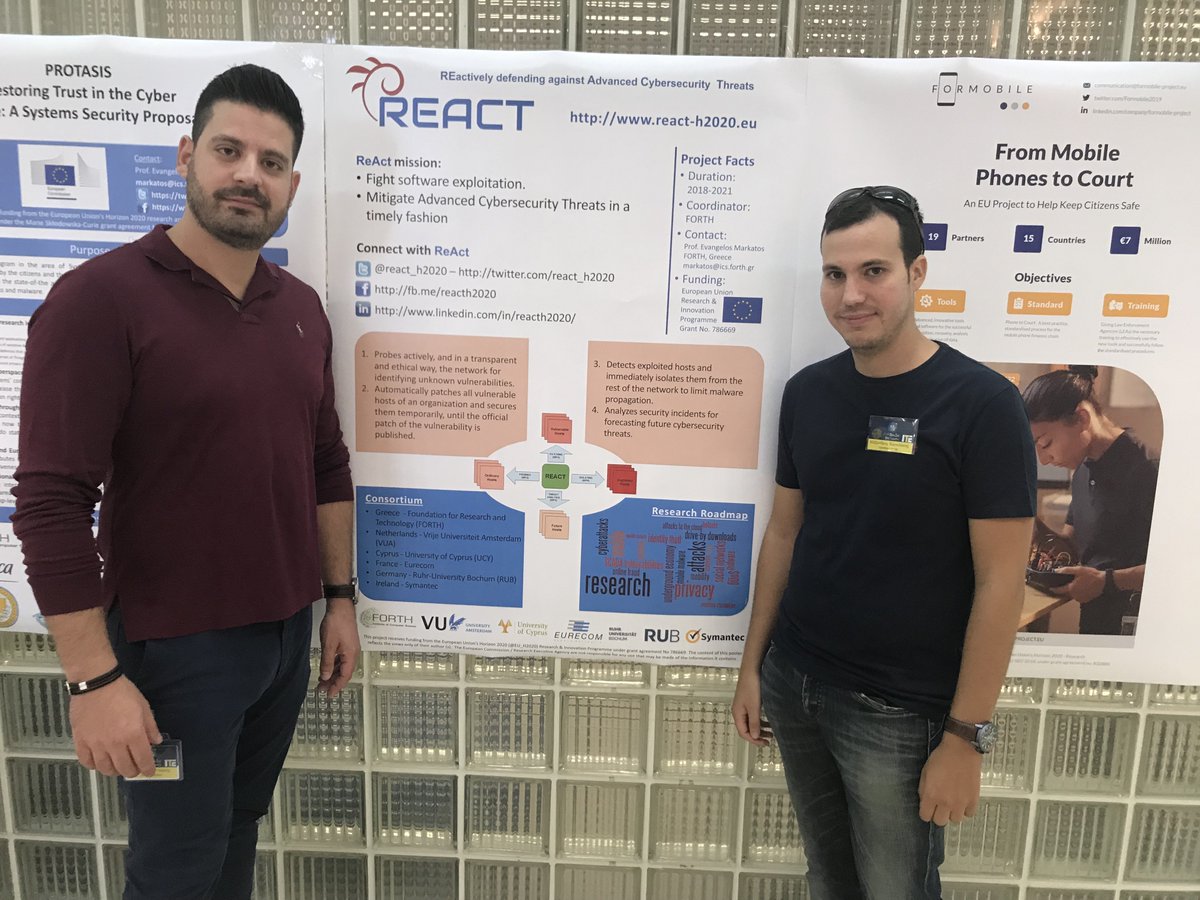 Evangelos Markatos will present the ReAct project at the second CyberWatching Concertation meeting:https://www.cyberwatching.eu/news-events/events/brussels-second-cw-concertation-meeting-04062019 …