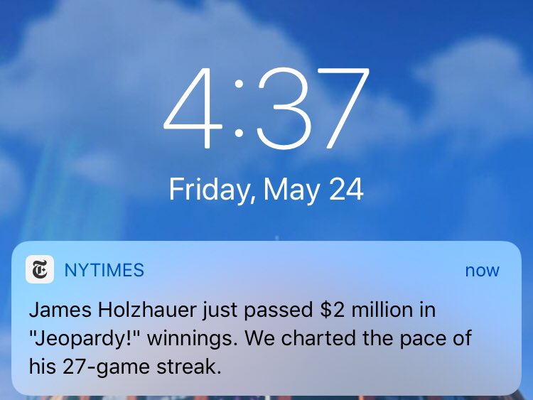 James Holzhauer passed $2 million in "Jeopardy!" winnings. We charted the pace of his 27-game streak.https://nyti.ms/2W2EKzr