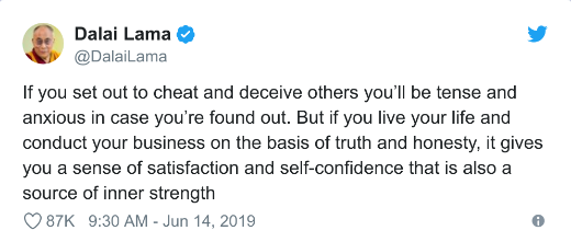 "If you set out to cheat and deceive others you’ll be tense and anxious in case you’re found out." ... -