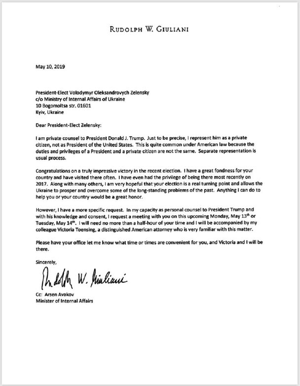 "In my capacity as personal counsel to President Trump and with his knowledge and consent, I request a meeting with you . . . " A "perfect letter" to go with a "perfect call"pic.twitter.com/OzUVHcQZ2N