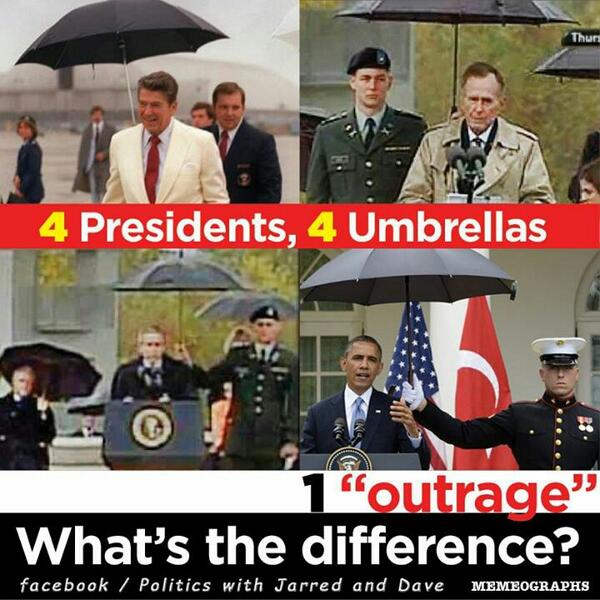 @sherrilee7@realDonaldTrump Did you see the pics someone posted of people holding umbrellas for Reagan & Nancy? But that's different !! -