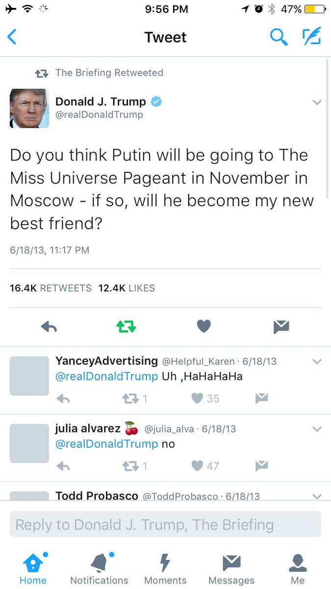 As far back as 2013 he wanted Putin's love .. An American President should never want this period end of story .