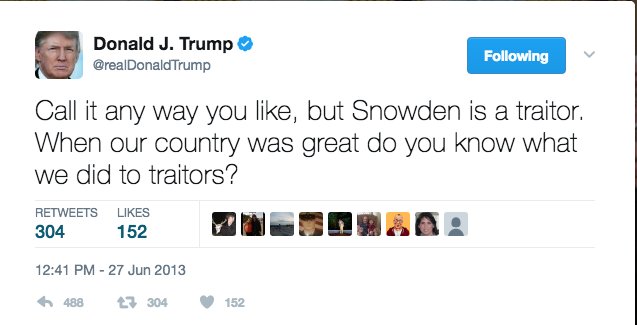 @realDonaldTrump snowden did the american public a great service. those with half a brain can see that.