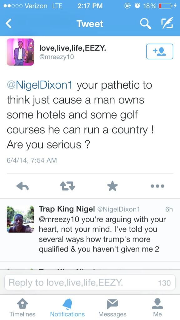 @realDonaldTrump I got you goon. I may be your only black voter but 1 is better than none.pic.twitter.com/gUcXln1ppk