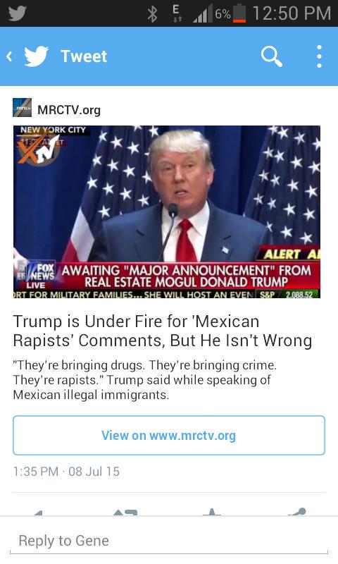 @Rev_Gordon@realDonaldTrump@mrctv Just say that you agree with Trump that Mexicans are rapist and drug traffickers! ! -