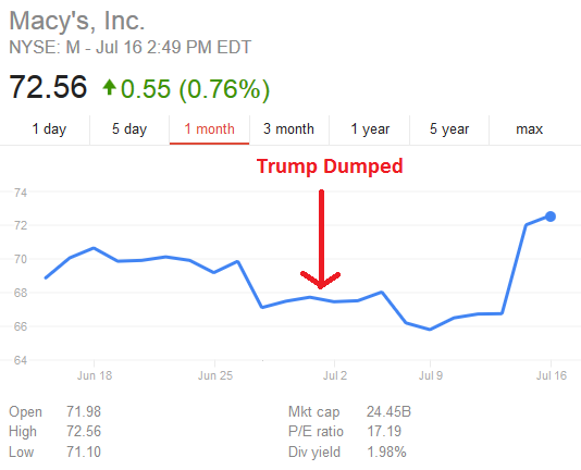 .@realDonaldTrump @BreitbartNews @ASwoyer 30,000 talked shit on Macy's Facebook page. It hasn't translated to any measurable genuine losses.