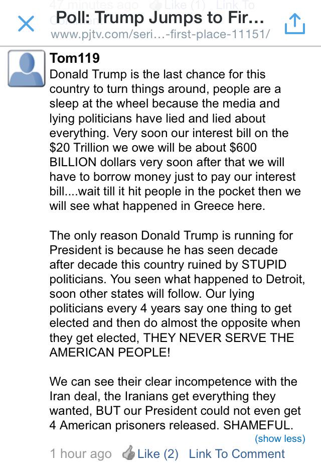 @realDonaldTrump@PJTV gogo Donald! ;) - 1 more reply