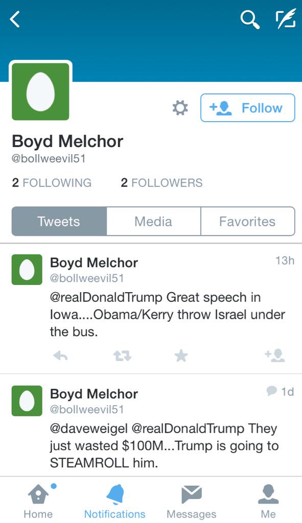 @realDonaldTrump@bollweevil51 that a man Trump win this race I know u canThanks. Twitter will use this to make your timeline better. Undo -