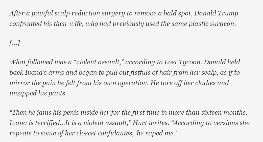 @drhelldigger Rape is a game of power and not sex. I'd be really worried about what he paid to silence Ivana. It wasn't a false accusation -