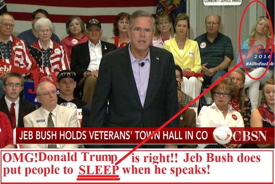 PIC> Jeb Bush literally put woman to SLEEP during his speech in Colorado.