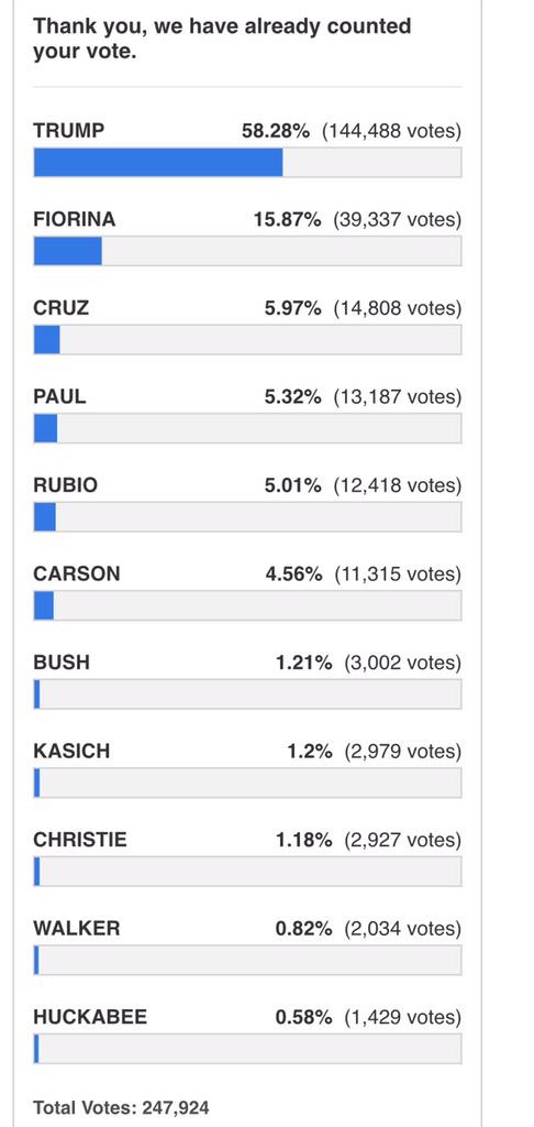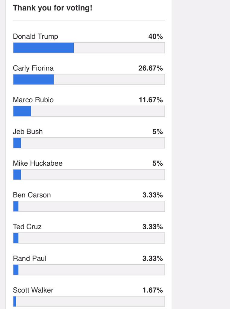 @RealNinjetta @SpacialTime@realDonaldTrump No one,if we need to pick a winner, Paul, Rubio, Carson and Fiorina will get bumps. Trump down. -