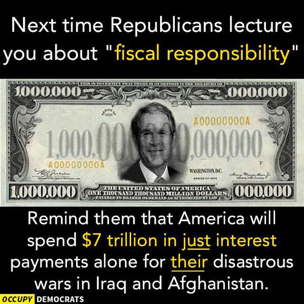 @GOP FUCK UP GWB put 2WARS onOUR CREDIT CARD?Why didn't he PAY IN CASH B4 he left office?@RandywheadMD1pic.twitter.com/Kc2nf1qlAr