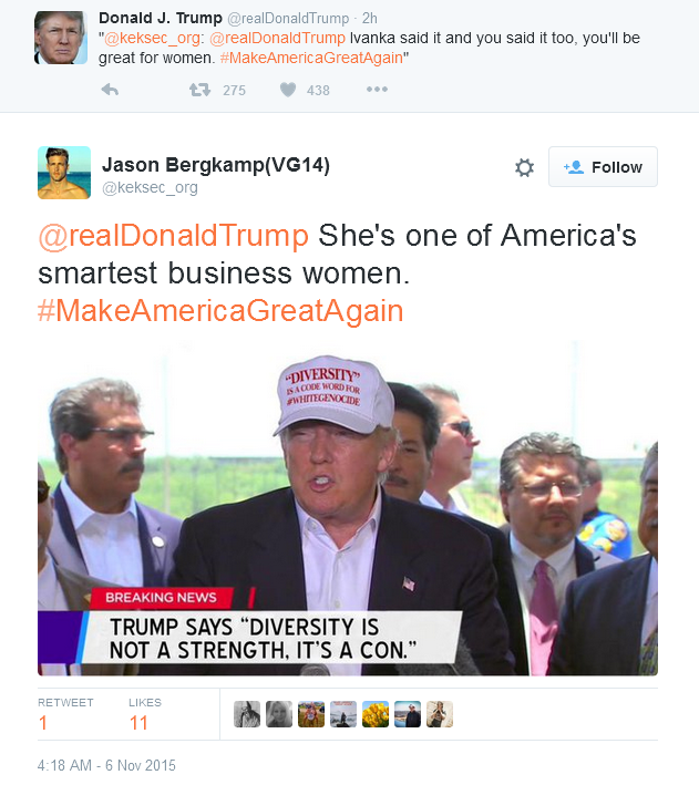 .@realDonaldTrump @keksec_org Just check who's trump RTed more often than anyone else. http://www.mediaite.com/online/trumps-retweeting-backfires-again-receives-endorsement-from-dutch-white-supremacist/ …pic.twitter.com/PUacozSJ0x