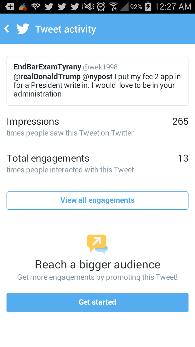 @realDonaldTrump@nypost I put my fec 2 app in for a President write in. I would love to be in your administration - End of conversation