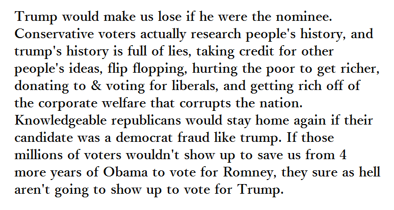 @dtfp2016 Romney was the last time I'll ever vote the lesser of 2 evils. I will join the 54 million if you all nominate trump. End of conv. -