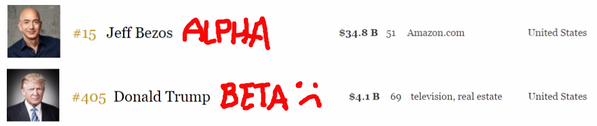 @kmcs1957 are you dumb? Google it. Bezos net worth is $47 billion. Trump maybe $4 billion. Not even close. Research before tweeting, dude. -