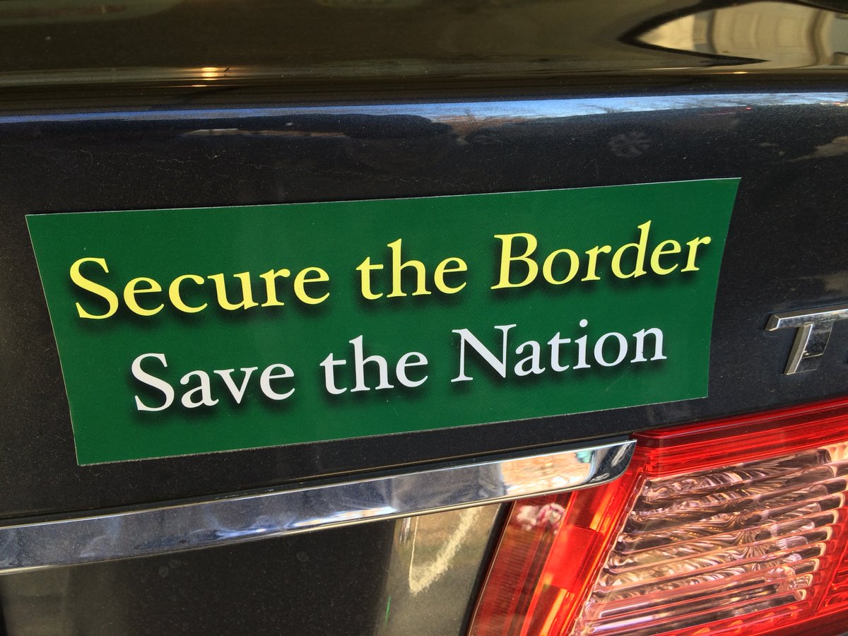 @realDonaldTrump@DrottM Secure the damned border- build the wall! (Stickers avail at http://jimpydesigns.com )pic.twitter.com/Q81nfuKN9o