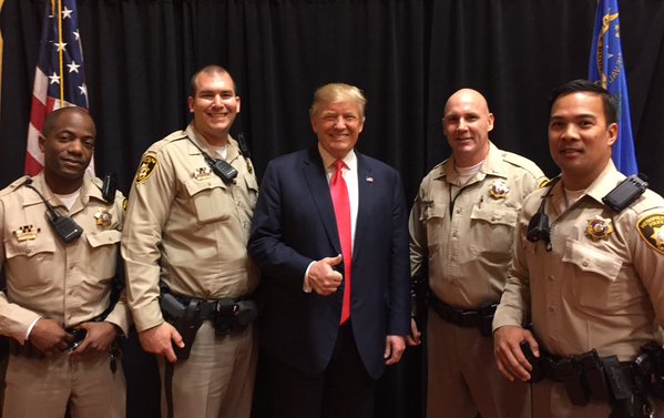 .@realDonaldTrump with officers from the @LVMPD. As always, he is thankful for their service! #Trump2016
