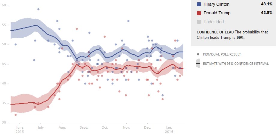 @Idiotsmurf If you find any sites with aggregate trend lines that show Trump EVER pulled ahead of Hillary... point to them. -