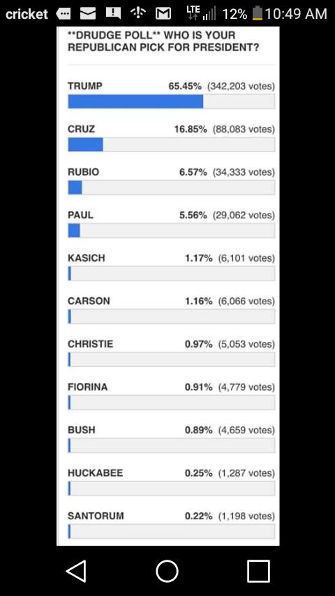 @ResisTyr Wow! Trump is leading in a Drudge poll! And the sun came up in the East today!
