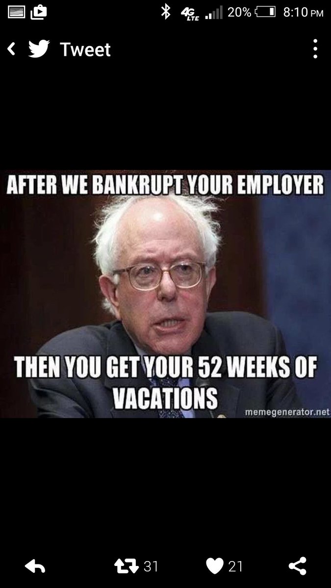 @Skaarj_Elite@Marinellimethod@realDonaldTrump Yes when you have no argument behind Bernie's plan bankrupting companies. -