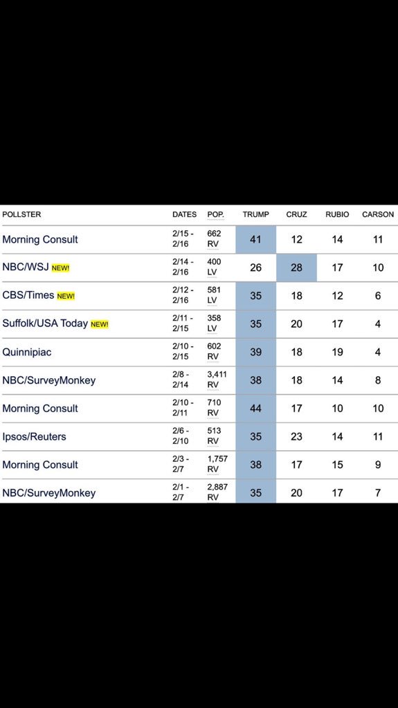 The average on all 8 polls Trump 32.875% Cruz