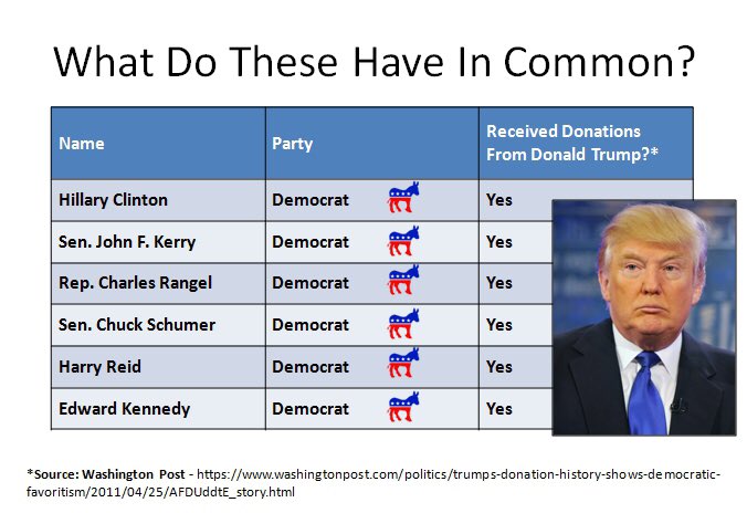 @XavierGGarza3@RenaSummersLtd@realDonaldTrump Trump always says he donates to everyone for what? Favors and help with his business. -