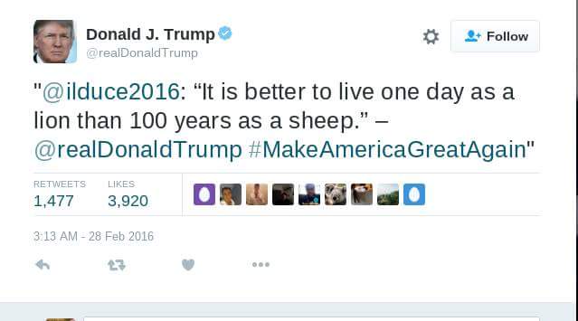 . You just retweeted Mussolini. Figured I'd tell you since none of your sheep pointed it out.