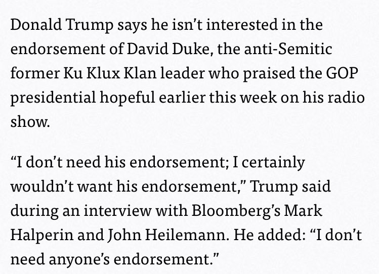 @lisa_ritz10@realDonaldTrump Because he already did it! The media has created this whole fake KKK endorsement to support their narrative. -