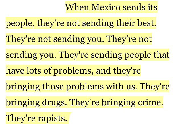 @socraticjuan@ljt0001 Wrong! He said "Mexico is not SENDING their best over here"! You can't handle the truth!You have to follow! Not lead! -