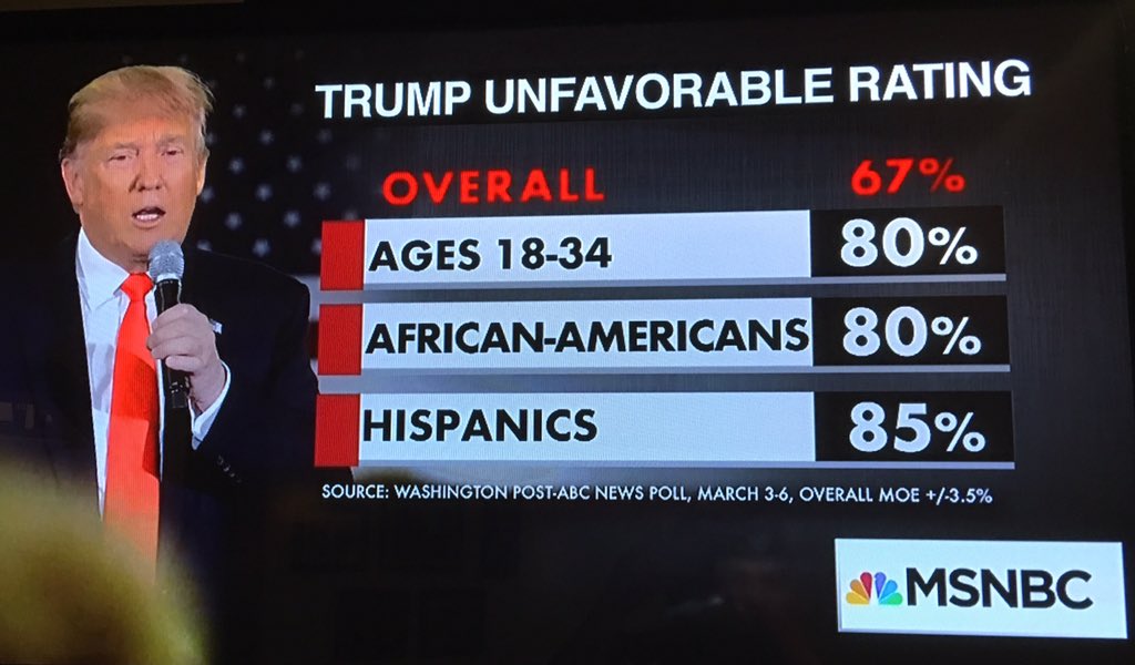 @realDonaldTrump unfavorable ratings: Ages 18-24 80%