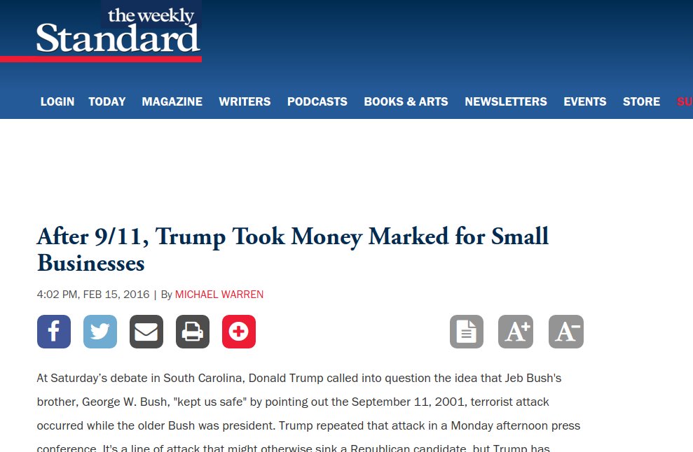 #NYPrimary Used 911 to profit off taxpayers-took money for small businesses@realDonaldTrump http://www.weeklystandard.com/after-911-trump-took-money-marked-for-small-businesses/article/2001099 …pic.twitter.com/baMd4xeaBo