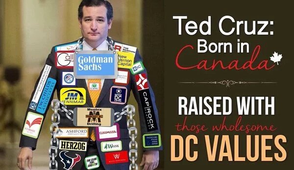 @realDonaldTrump TedCruz is backed 100% by the establishment, lobbyists, special interest JUST THINK ABOUT THAT!pic.twitter.com/o9hPQisMr1