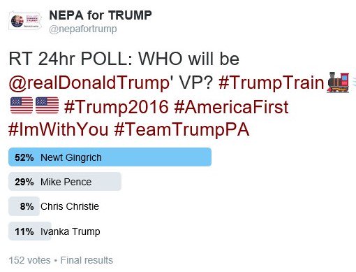 I agree. Trump has my vote either way, but until Pence is set in stone, I want to plea for Newt!