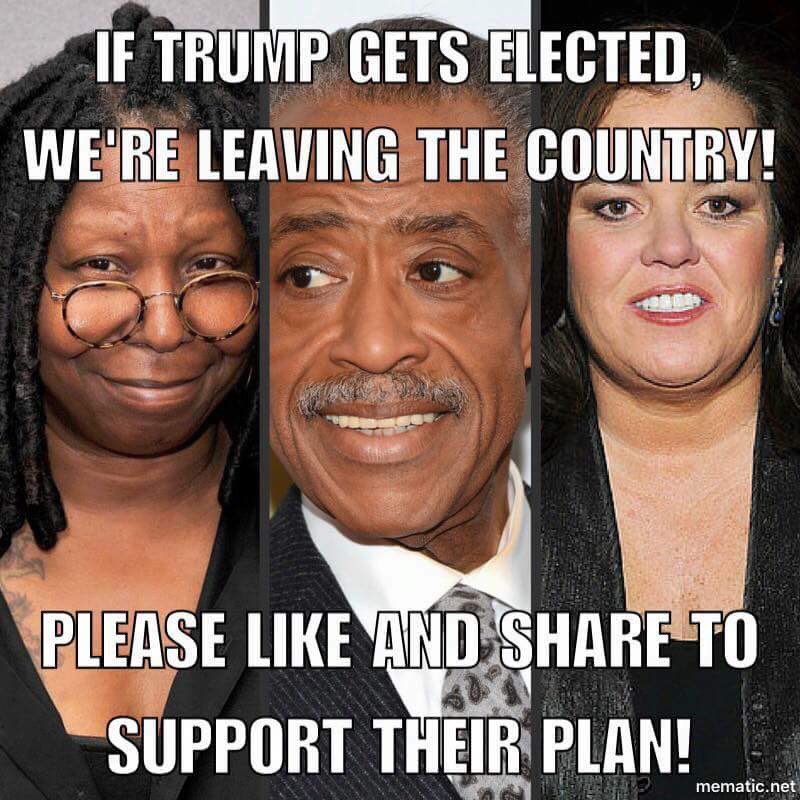 Bye Bye Better get to packing! America Love It Or Leave! I'm sick of cry babies! You think Trump voter's care?