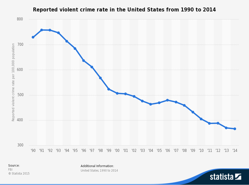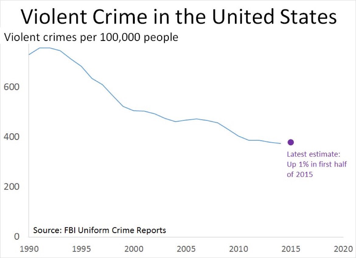 That was 2015, Since then - CNN: Violent crime rising in US cities, study finds http://www.cnn.com/2016/07/25/politics/violent-crime-report-us-cities-homicides-rapes/index.html … /