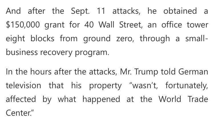 FACT: Trump claimed $150k of 9/11 relief funds meant for SMALL business, whilst giving ZERO $ to 9/11 charity. Google it.