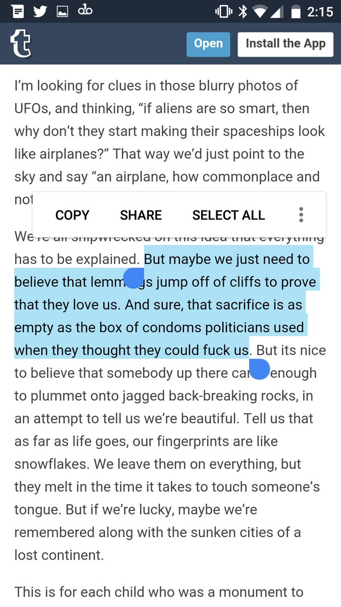 you reminded me of this great poem by Shane Koyczan. Highlighted the line. It also reminds me of