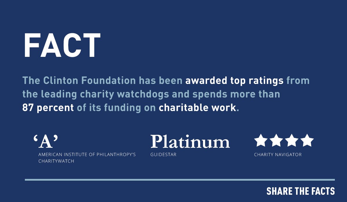 and another independent charity watch dog group https://www.charitywatch.org/ratings-and-metrics/bill-hillary-chelsea-clinton-foundation/478 …