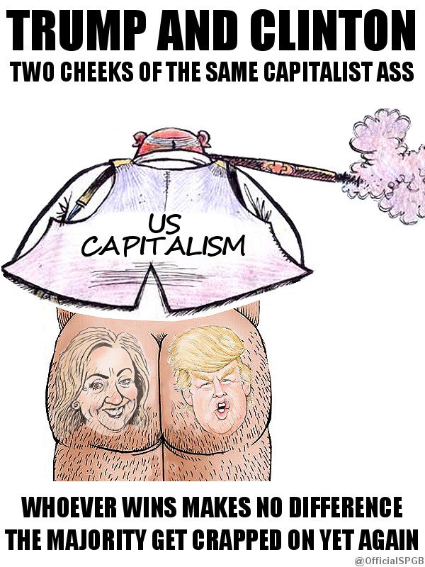 Just because we’re anti-Trump doesn’t mean we’re pro-Hillary. We support neither as both want rotten capitalism to continue.pic.twitter.com/60XM0KdkUi