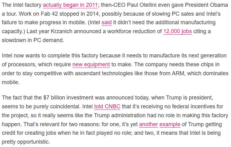 @realDonaldTrump YOU had nothing to do with it. Intel first announced its plans to build the new factory in Chandler in >>>>2011.<<<<Thanks. Twitter will use this info to make your timeline better. Undo -