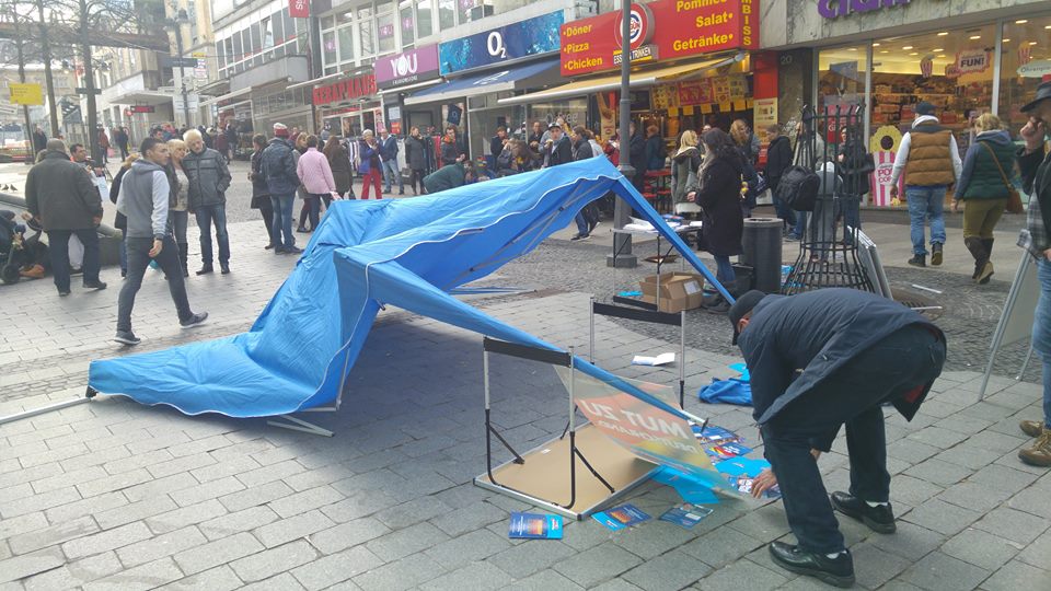Germany: Left-wing extremists attacking an info desk of AfD party in Wuppertal. Merkel-Democracy!https://twitter.com/OnlineMagazin/status/838040316011741185 …